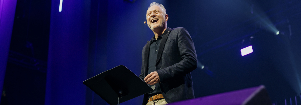 Markus Weimer fällt es nicht schwer, sein Publikum zu gewinnen. Eine kleine Anekdote zum Anfang bringt das Publikum zum Lachen und leitet über zu einer Frage, die er in den Raum wirft: „Bist du gerade gerne Mitglied deiner Gemeinde?“ Irgendwo in der Halle ruft eine begeisterte Person „Ja!“, was den Referenten zum Schmunzeln bringt. Trotzdem erkennt er die verschiedenen Seasons an, durch die Gemeinden oft gehen: Da gibt es Zeiten, die geprägt sind von leidenschaftlichem Einsatz für die Sache Jesus, aber auch Konflikte gehören zum Alltag vieler Gemeinden. Er stellt fest: „So wie es aktuell ist, kann es nicht blieben.“ Es herrsche Unsicherheit und Angst und auch wenn es immer wieder gut gemeinte Versuche nach Aufbruch und Veränderung gebe, stellt Markus Weimer fest: „Die großen Reformprogramme werden zu schlichten Strukturmaßnahmen.“ Eine Welt, die sich im Wandel befindet und damit auch Wandel und Veränderung in Kirchen benötigt, nehmen viele Menschen als problematisch war – Markus Weimer fokussiert jedoch die Frage, wie wir gut damit umgehen können. Die zentrale Frage für ihn lautet: „Wie kann Veränderung geistlich nachhaltig gestaltet werden? Welche Haltung braucht es, damit so ein Wandel gelingt?“
